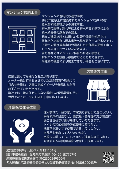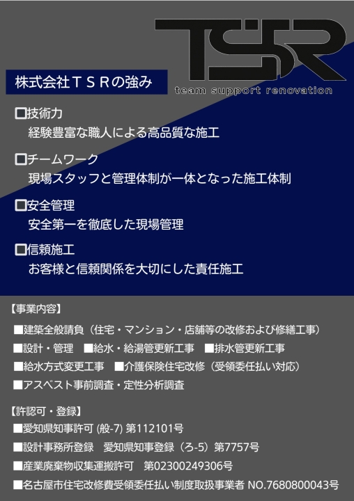 安心・丁寧・高品質な施工で、長く愛される住まいづくりをお手伝いします。